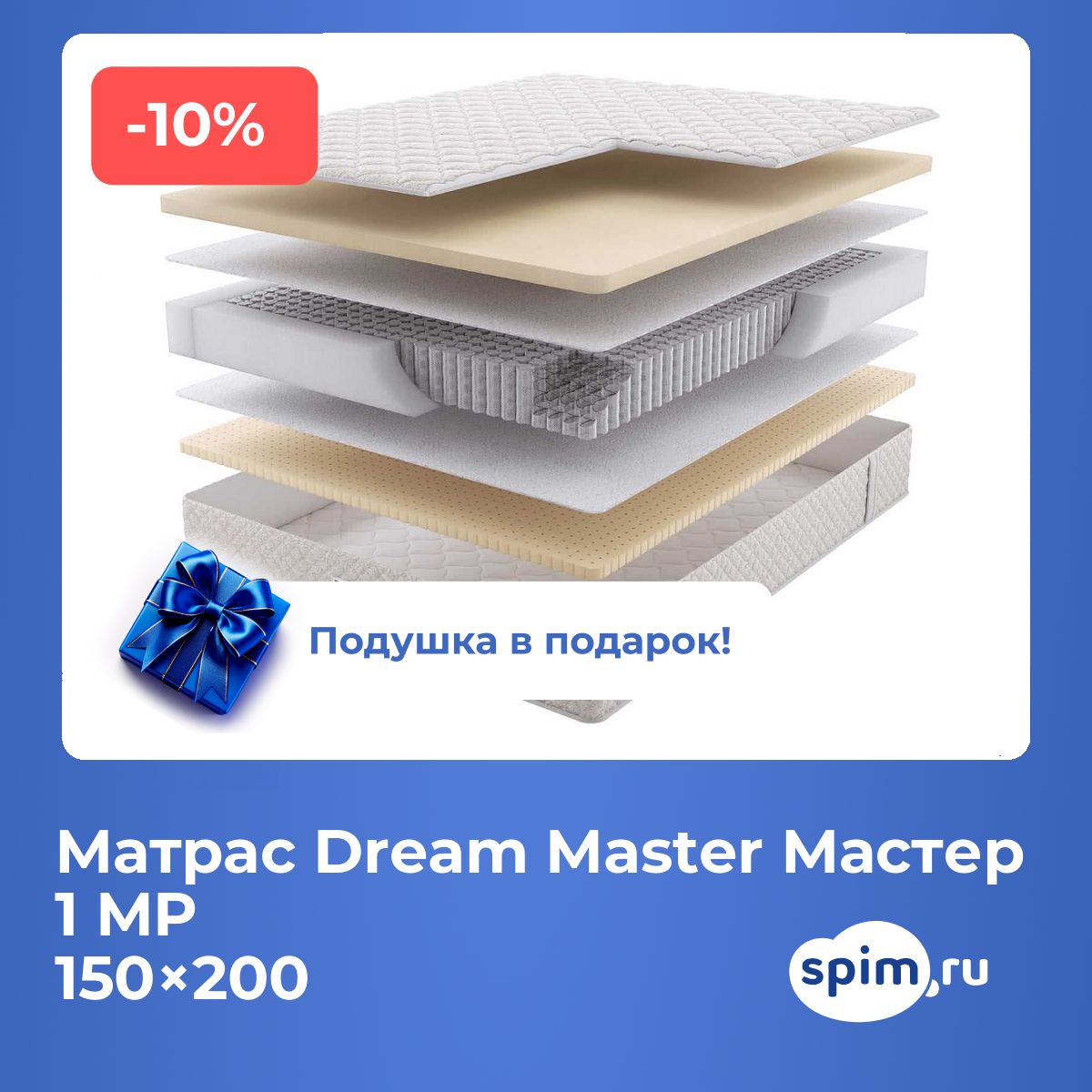 При покупке любого матраса, кроме моделей из серий "Топпер", вы получите в подарок:
