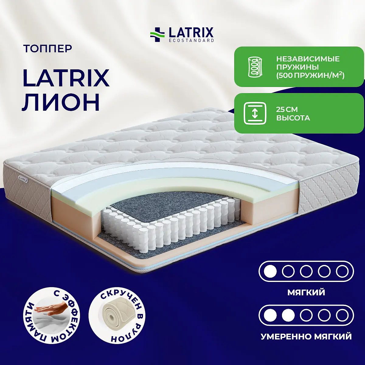 Высота матраса — 25 см.