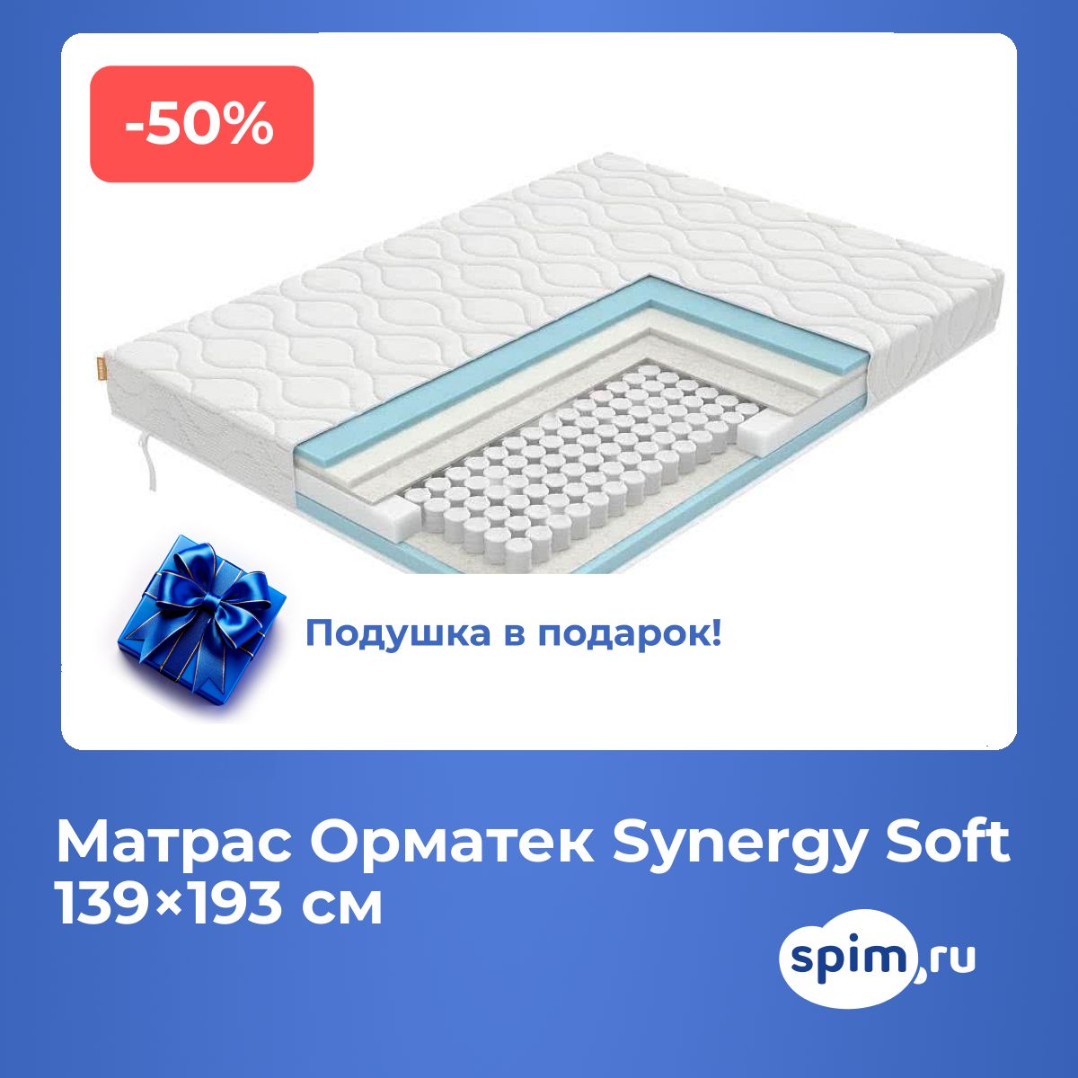 Подушка Орма Sleep в подарок при покупке матраса стоимостью от 15,000 рублей.