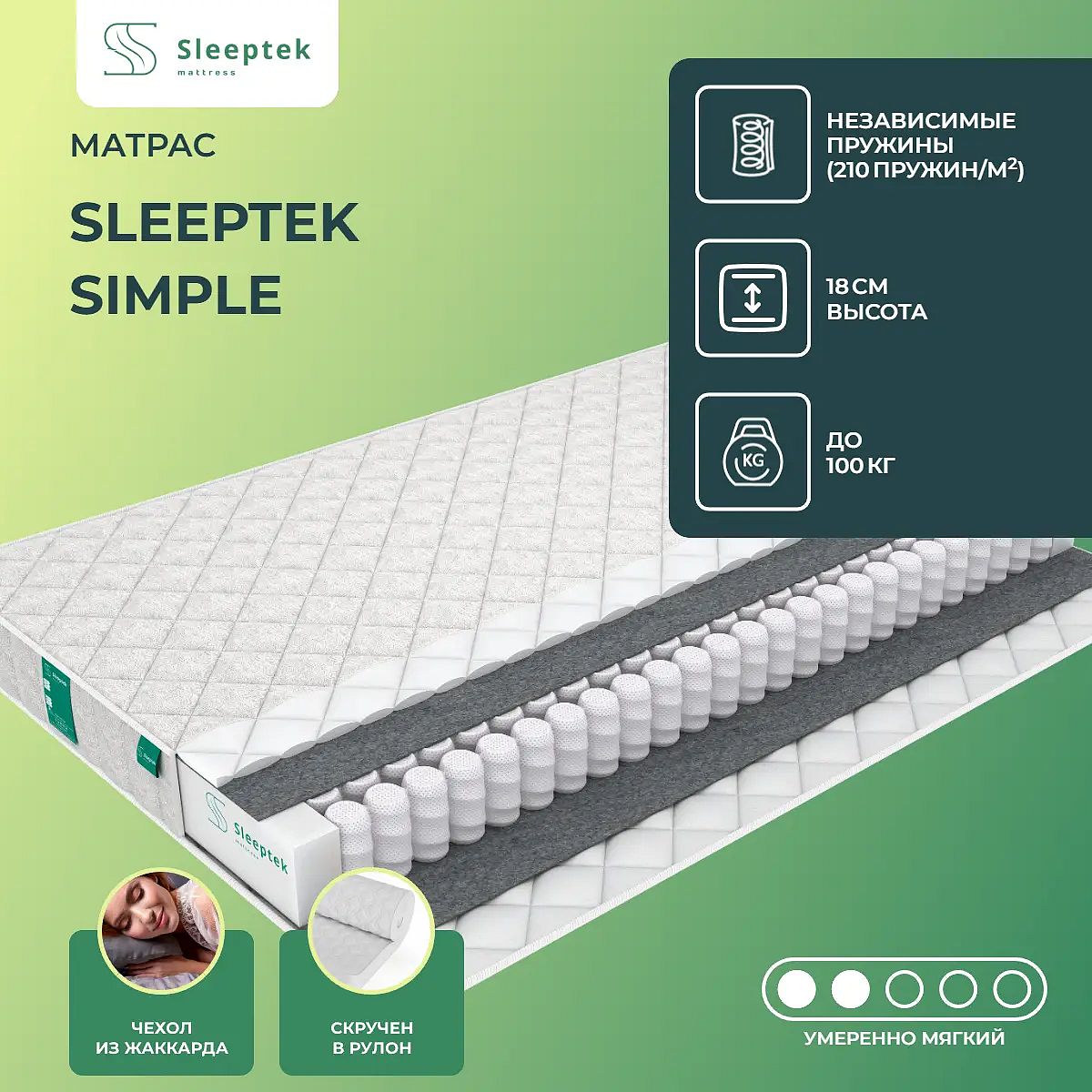 Средне-мягкий матрас «Sleeptek Simple» — для настоящего ценителя комфорта. Такая модель отлично подходит людям с небольшим весом.