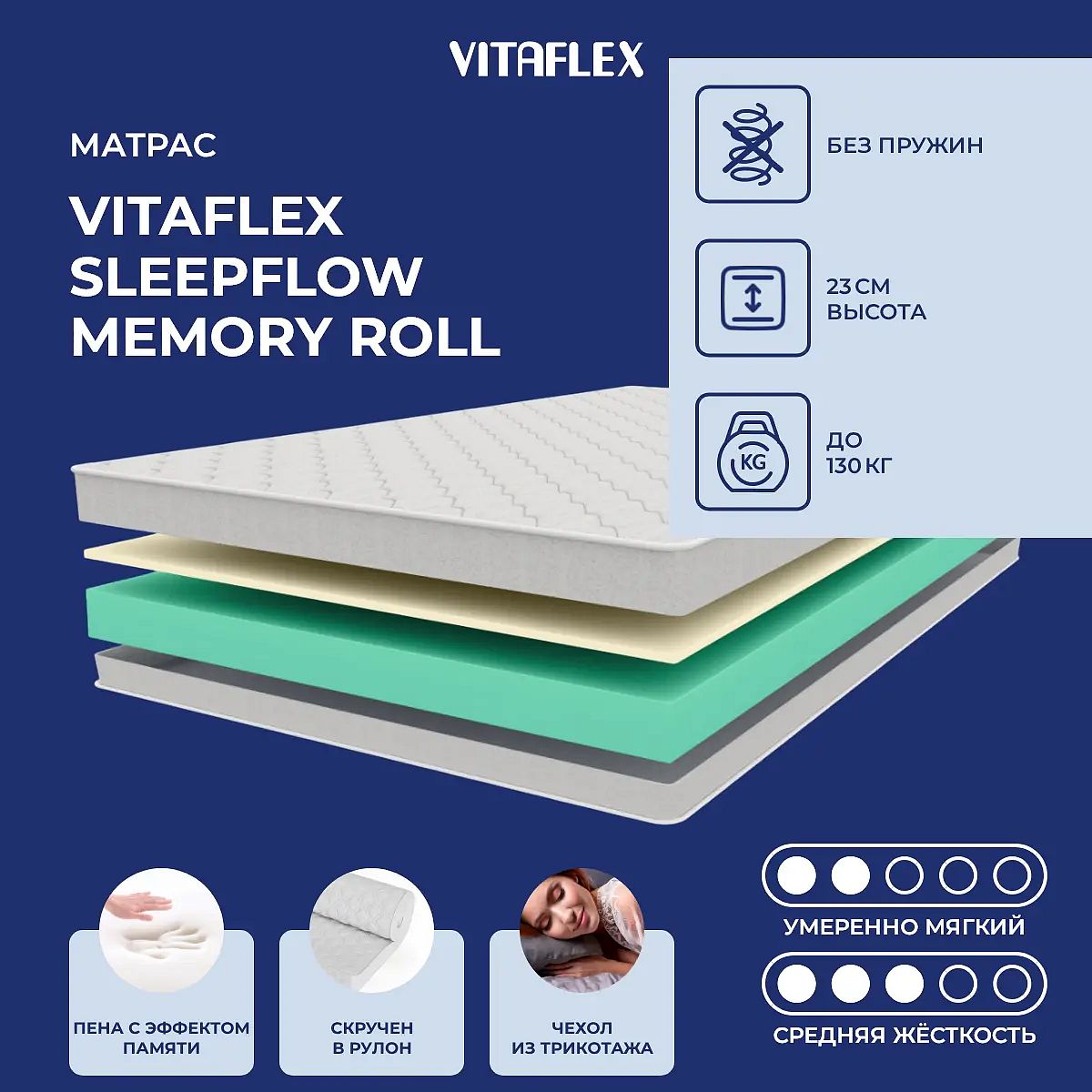 Матрас Vitaflex SleepFlow Memory Roll 75х100 смАртикул С-134099
